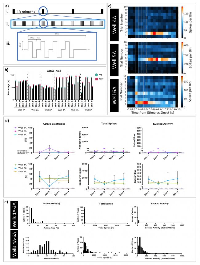 研究系統運用HD-MEA技術對神經類器官進行多維度功能表征。通過記錄6-14周類器官的自發和誘發活動,分析了四個關鍵方面:
