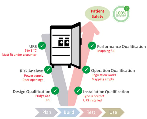 雖然法規(guī)對(duì)確認(rèn)沒有嚴(yán)格的結(jié)構(gòu)要求,但行業(yè)普遍遵循GxP原則,確保清晰的文件記錄,并進(jìn)行充分的風(fēng)險(xiǎn)分析。V模型是確認(rèn)的最佳實(shí)踐,涵蓋以下階段: