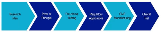 其中,Pre-clinical Testing 與 Regulation Applications 是同時進行的,工藝開發是基礎,決定了是否成功。首先對產品/工藝相關風險進行關鍵評估,涉及產品產量、產品活率、試劑及耗材、監管要求、如何評價結果以及實際可行性(成本、規模以及時間)。