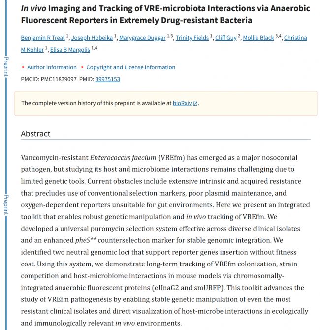 近日,美國圣裘德兒童研究醫院(St. Jude Children’s Research Hospital)的科研團隊在國際知名平臺發表題為《In vivo Imaging and Tracking of VRE-microbiota Interactions via Anaerobic Fluorescent Reporters in Extremely Drug-resistant Bacteria》的研究報告,為耐萬古霉素屎腸球菌(VREfm)的研究帶來突破性工具。