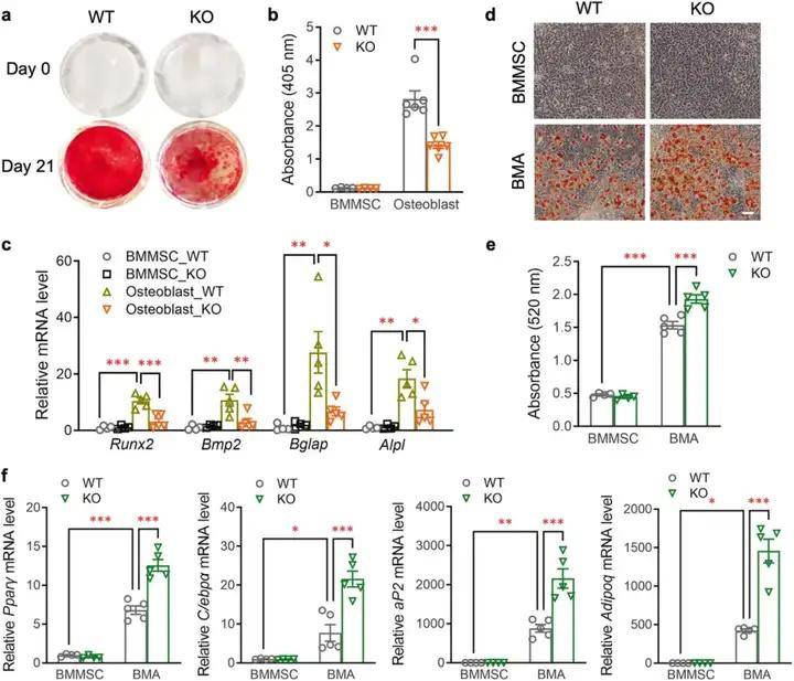 圖1.PIEZO1基因缺失的骨髓間充質(zhì)干細(xì)胞優(yōu)先分化為脂肪細(xì)胞而不是成骨細(xì)胞