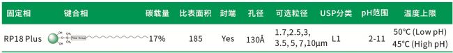 在鍵合相中插入極性內嵌基團,XP RP18Plus能兼容并耐受100%水相,在pH2-11的范圍內穩定。極性內嵌基團對填料上硅醇基也有屏蔽作用,從而為堿性化合物提供良好的峰形,XP RP18Plus選擇性也與XP tC18不同。