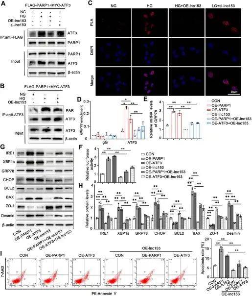 2、LncRNA 153通過調節PARP1和ATF3之間的相互作用參與HG誘導的足細胞損傷