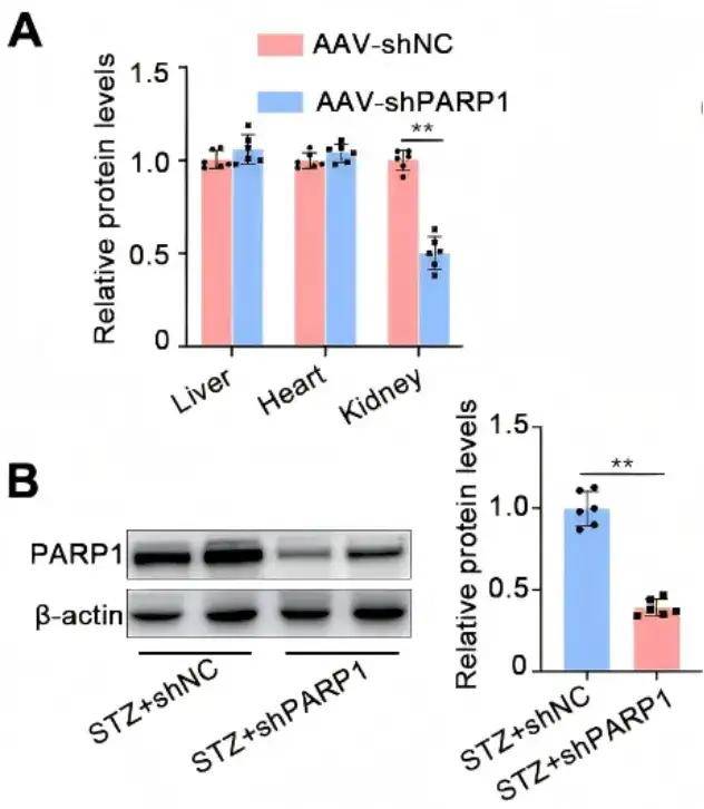 AAV9-nphs1-shPARP1有效介導腎臟組織中PARP1的敲低