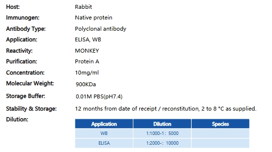 兔抗猴IgG抗體是專門針對非人靈長類動物(特別是恒河猴和食蟹猴)免疫球蛋白G(IgG)的多克隆抗體。這類抗體通過將猴源IgG作為免疫原免疫新西蘭大白兔制備而成,具有以下重要理論意義和研究價值: