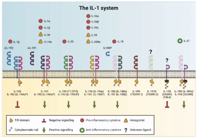 IL-1系統(tǒng)是一個(gè)由配體、受體及負(fù)調(diào)控分子構(gòu)成的復(fù)雜網(wǎng)絡(luò),各成員通過結(jié)構(gòu)同源性與功能關(guān)聯(lián)性形成協(xié)同調(diào)控體系。