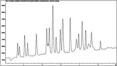 | Oven Program: | 100 °C for 1 min, to 280 °C at 30 oC/min, to 310 °C at 15 °C /min and hold for 4 min |