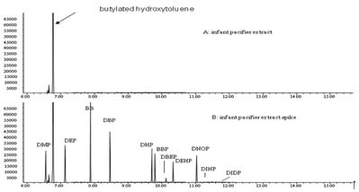pacifier extract spiked with 2-ppm phthalate mixture (B)