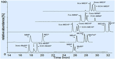 增塑劑在體內能夠代謝成對生物體有害的代謝物,因此其分析非常重要。表2列出6種法規控制的增塑劑成分及其可能的體內代謝物。