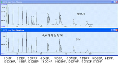 圖3. 17種增塑劑成分的SCAN/SIM模式譜圖(參照國標GB/T 21911-2008)