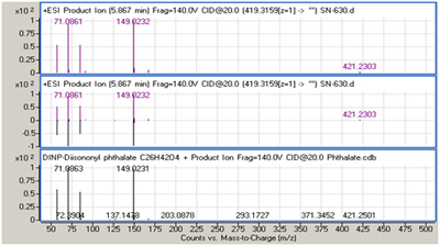 圖7. 食品基質中未知增塑劑成分的數據庫快速篩查