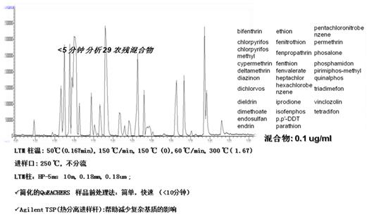 (色譜柱: LTM HP-5MS, 10m,0.18mm,0.18um;LTM柱溫程序: 60℃(0.2min), 100 ℃/min,220 ℃(0.2min), 25℃/min,280℃(0.8min))