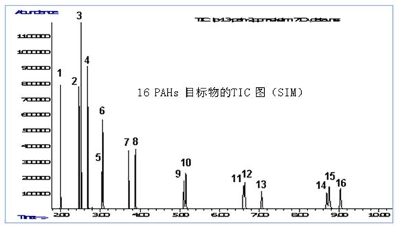 圖5:5975T可以在10分鐘內分析出16種水中多環芳烴PAH