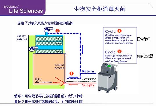 一般常用的熏蒸用消毒劑包括甲醛、過氧化氫、二氧化氯等,甲醛雖然成本最為低廉,但因其致癌作用已經越來越受到使用限制,而且做過甲醛熏蒸的人大多會頭痛不已,因為要將整個安全柜用塑料布封閉起來、計算需要的消毒劑用量、布置生物指示劑、中和消毒劑、等待漫長的十幾小時等,最擔心的恐怕還是甲醛的泄漏,以及生物挑戰實驗的成敗等安全問題。