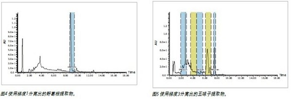 圖4和圖5顯示了使用所述技術分離出的野葛根提取物和五味子提取物。這三種天然產品提取物的色譜圖與薄層色譜板得出的結果類似,表明此項技術提供了一種適合的工作流程。一旦分析完成,樣品結果可根據需要電郵發送給用戶或打印出來。系統管理員可決定登錄準入權限、方法選擇和報告生成,進而完成系統配置和設置。系統管理員也可增加或減少用于分析選擇的可用方法個數。2545型四元梯度模塊可同時選擇四種溶劑,這提供了選擇多種緩沖液或替代型有機改性劑的可能性。制備型色譜架可便捷容納多根色譜柱和一對進樣器,從而增加了方法選擇的靈活性。
