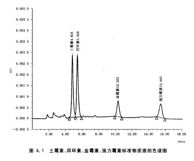 目前常見的非法添加抗生素主要是抗生素的過量使用,以常見的抑菌類抗生素—金霉素為例,《允許作飼料藥物添加劑獸藥品種及使用規定》中指出,食用動物(包括肉雞)的使用年齡上限為10周,最高用量為5000萬單位/噸(配合飼料),并且補充要求在高用量時低鈣飼料連用不得超過5天。過量使用會導致雞肉中殘留金霉素超標。農業部《動物性食品中獸藥最高殘留限量(農業部2002年235號公告)》要求,金霉素在雞肉中殘留量不得超過100 μg/kg。國家質量監督檢驗檢疫總局也發布標準《GB/T 20764-2006 可食動物肌肉中土霉素、四環素、金霉素、強力霉素殘留量的測定 液相色譜-紫外檢測法》,明確了檢測方法及檢測限度。