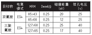 另一方面,傳統的三聚氰胺方法是采用Oasis® MCX這種反相和陽離子交換的復合SPE模式,然而這種方法完全不適用于雙氰胺;而Sep-Pak® AC2小柱雖然可以用于雙氰胺的凈化和富集,但仍需開發一個更為快速的前處理方法。