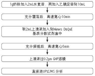 為達到快速、高效的檢測目的,本實驗采用Waters DisQuE樣品制備試劑盒。