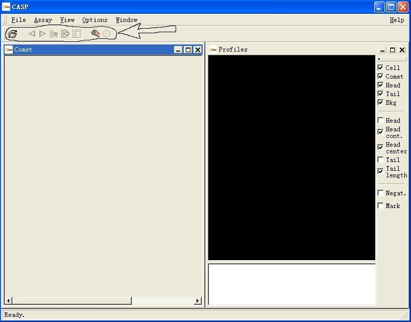 的工作界面登錄www.bio-launching.com網站”資料下載” 單元下載CASP彗星分析軟件(免費版)壓縮包,解壓縮后,即可看到CASP彗星分析軟件(免費版)應用程序,打開即可使用。
