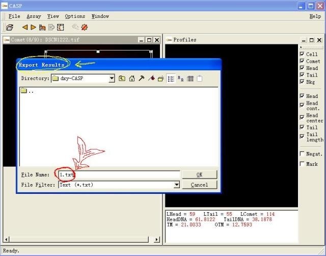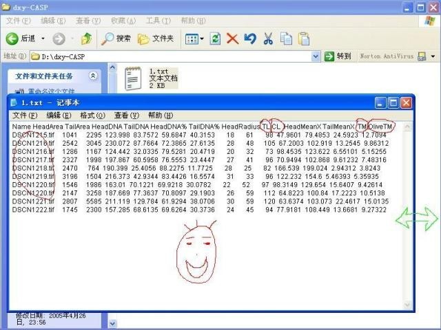 九、 沒關系,把結果稍微調整一下就好看了,(要把結果直接轉入SPSS統計軟件分析,必須做調整!!!)。調整文本框的寬度(綠色箭頭處),把分析的指標都放到第一行,可是各個指標的英文單詞比較長,簡化一下,如:taillength 變成tl,cometlength變成cl,紅色圈定區,我不再一一贅述。調整后,左側就是圖像的name,向右依次是各個指標的數據,注意!!!各個指標名和數據之間一定要有空格相隔!!!否則無法轉入SPSS統計軟件!