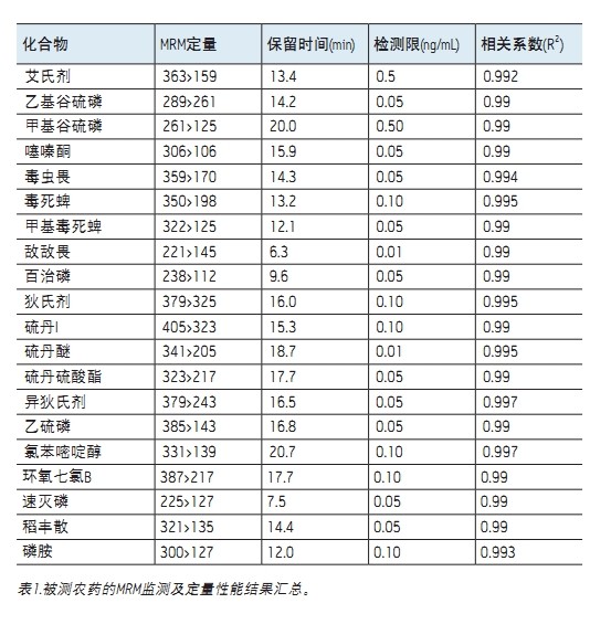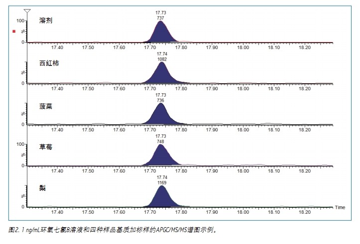 APGC/MS/MS可靈敏、準確地檢測水果和蔬菜中QuEChERs方法提取的多種農藥殘留。