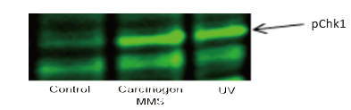 Figure 6. 檢測分別使用致癌物MMS和UV輻射處理的HEK-293細胞中磷酸化的pChk1(Stanford University)。
