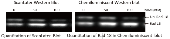 • 使用Scanlater Western Blot技術檢測痕量表達的內源性泛素化Rad-18蛋白(參與UV-損傷DNA修復過程)。
