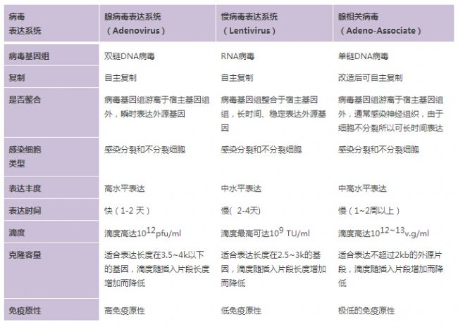 當我們需要對特定基因進行過表達或干擾時,特別是做動物實驗的時候,就可以使用rAAV病毒。針對不同的實驗需求,下表可以幫助您選擇合適的病毒工具。