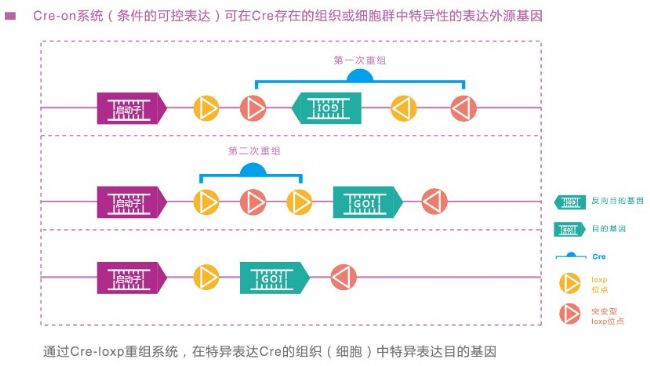 3.Cre-on,Flex,DIO,double floxed這些技術名稱經常在文獻中被提及,其實都是一回事,就是使用Cre-Loxp系統,經過兩次染色體重組在特定臟器中表達外源基因。前提是我們需要獲得特定的Cre小鼠后才可以使用這個技術。Cre-on系統的技術原理如下: