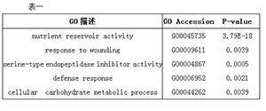 為了對ZmMADS47 RNAi后整體基因表達水平進行一個大致的了解,研究人員使用了上海伯豪的玉米mRNA高通量測序服務對ZmMADS47 RNAi籽粒的模式進行轉錄組層面的研究。GO歸類后發(fā)現(xiàn),差異基因主要被歸類于營養(yǎng)儲藏類(表一)。