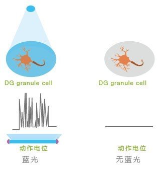 ChR2:響應(yīng)藍(lán)光的陽離子通道,引起細(xì)胞膜的去極化并產(chǎn)生動作電位。