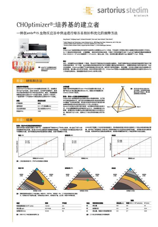 CHOptimizer® : 培養基的建立者Bremer, Kusser, Gillmeister, Lee, Mitchell & Sheikh (2015) 在2015年國際生物工程會議中展出的一副海報,展示了生物制藥公司是如何提高上游工藝的生產率并實現更高表達量的。