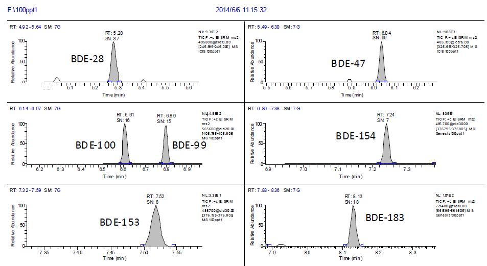 圖3. 0.1pg/ul 7 種多溴聯苯醚的色譜圖