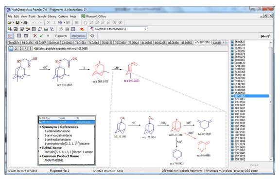 該軟件含有 Fragmentation Library 碎裂數(shù)據(jù)庫,該數(shù)據(jù)庫幾乎涵蓋了所有已發(fā)表的文獻,在快速完成碎片結(jié)構(gòu)歸屬的同時,可以獲得完整的碎片裂解機理,并可方便的調(diào)用查看所引用的文獻情況,保證了碎片解析的準確性(圖 10)。