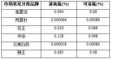 市面上含氟牙膏中的氟主要以氟化亞錫、單氟磷酸鈉或氟化鈉形式存在。我國牙膏執行標準GB 8372-2008中標出:成人牙膏氟含量在0.05%—0.15%之間,兒童牙膏氟含量在0.05%—0.11%之間。目前牙膏生產廠家常用的測定方法有氣相色譜法、離子色譜法、分光光度法,滴定法和氟離子選擇性電極法等。
