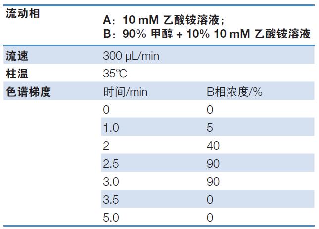 表 1. 寡聚核苷酸分子質量測定的色譜分析條件