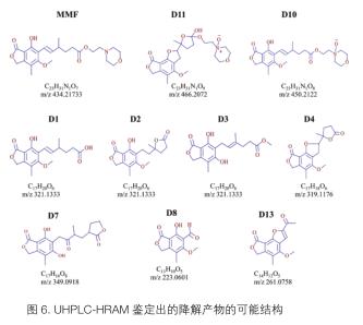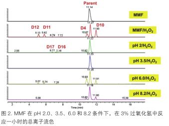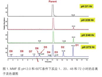 強(qiáng)制降解實(shí)驗(yàn)?zāi)芙沂靖鞣N環(huán)境因素對(duì)原料藥和制劑的影響。它能提供藥品安全信息、確定推薦儲(chǔ)存條件、保質(zhì)期和分析方法的特異性。而降解產(chǎn)物的信息能幫助改進(jìn)化合物或配方的發(fā)展。霉酚酸酯(MMF)的商標(biāo)名稱為驍悉(CellCept),是一種免疫抑制劑和霉酚酸(MPA)的前體藥物。MMF 廣泛的應(yīng)用在治療器官移植排異反應(yīng)和自體免疫疾病的移植藥物中,為本研究選擇的模型化合物。