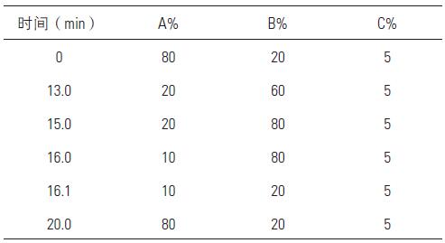 色譜柱:Hypersil GOLD 柱,2.1mm×150mm,粒徑3 μm.