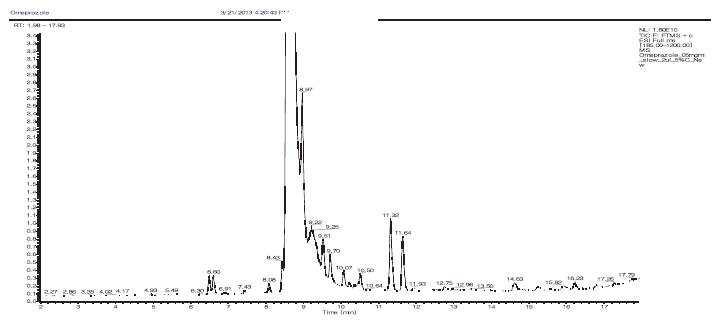 奧美拉唑溶液(0.5 mg/mL)配制在1:1 乙腈/ 水混合溶劑中。