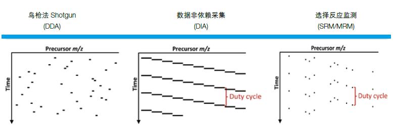 圖 1. DIA 與經(jīng)典 Shotgun、SRM/MRM 的原理比較