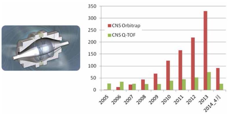 圖 7. Orbitrap 結(jié)構(gòu)圖及發(fā)表高水平論文趨勢比較