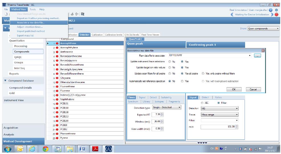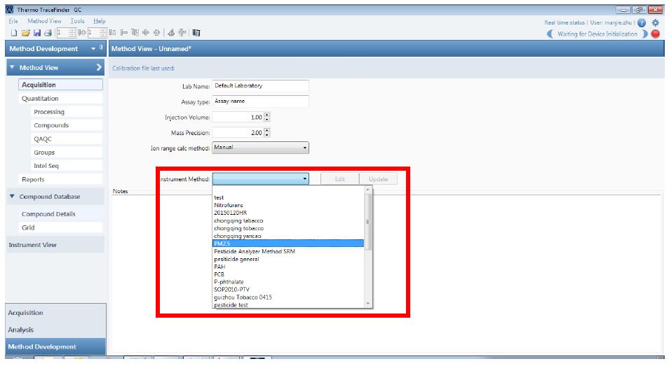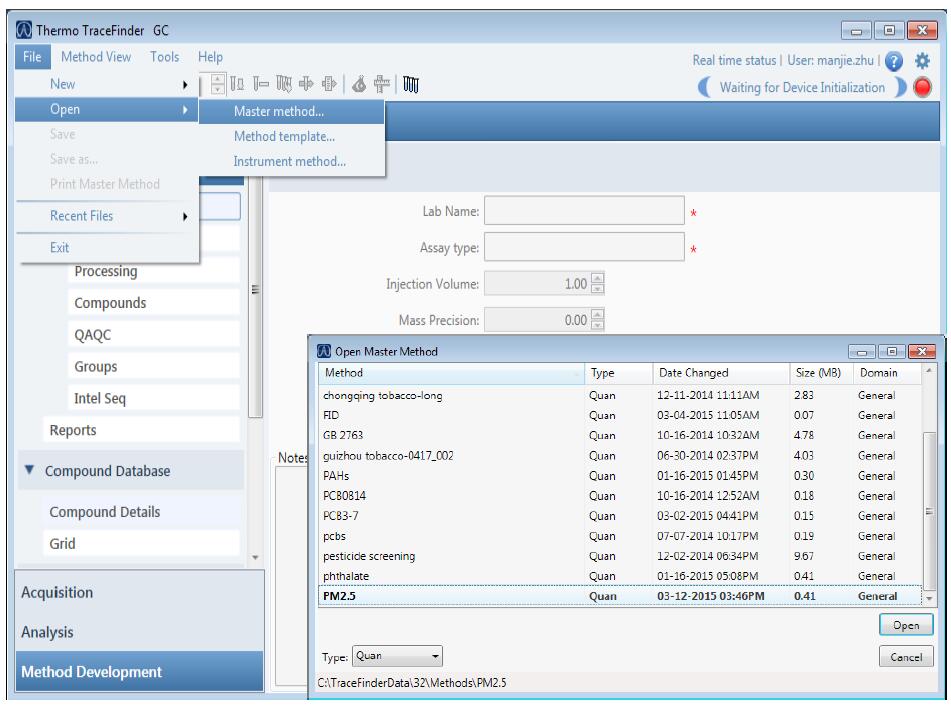 在 Instrument method 中選擇下拉菜單的 PM2.5,保存這個(gè) Master Method。