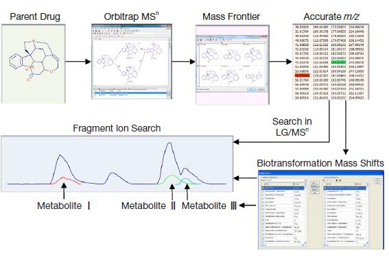 圖4.碎片離子檢索士的寧未知代謝物工作流程
