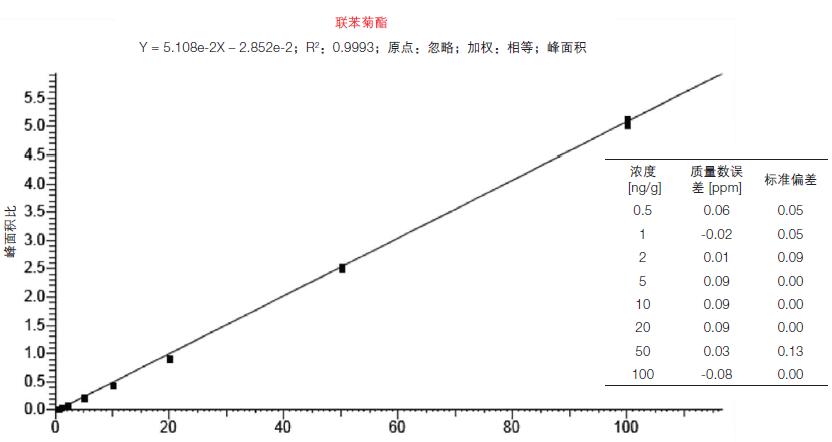 數據顯示在單一質譜圖內,質量準確度仍表現出良好的動態線性范圍。