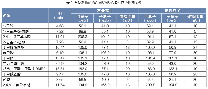 應(yīng)用固相微萃取-氣相色譜-三重四極桿質(zhì)譜(SPME-GCMS/MS)對(duì)食物包裝卡紙中遷移污染物的定性、定量分析
