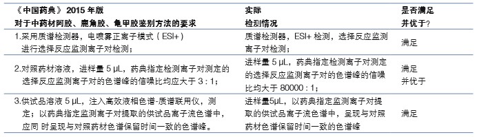 TSQ Endura針對《中國藥典》 2015 年版藥材阿膠、鹿角膠、龜甲膠的鑒別方法