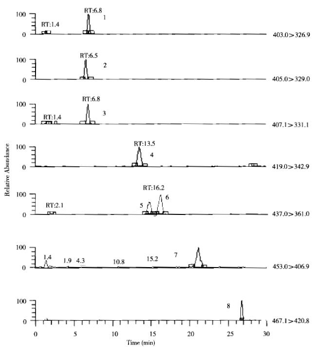 糖皮質激素(Glucocorticoid),又名“腎上腺皮質激素”,是由腎上腺皮質分泌的一類甾體激素, 也可由化學方法人工合成。本文參考GB/T 21981-2008、GB/T 22957-2008、GB/T 24800.2-2009、SN/T2222-2008、農業部1063 號公告-1-2008、農業部1063 號公告-5-2008,簡化自農業部1031 號公告-2-2008,是一個快速檢測8 種糖皮質激素藥物殘留量的儀器方法,外標法定量。