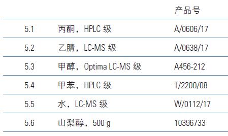在體積比為70/30% 的乙腈/ 水溶液中配制,進樣前加入樣品中。進樣前加入保護劑溶液的目的是防止分析物的交互反應和進樣過程中的損失8。