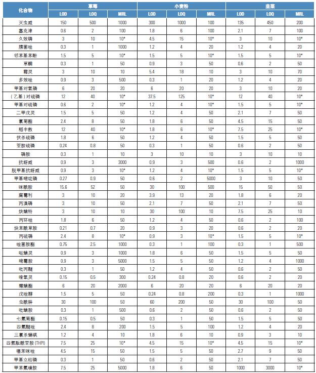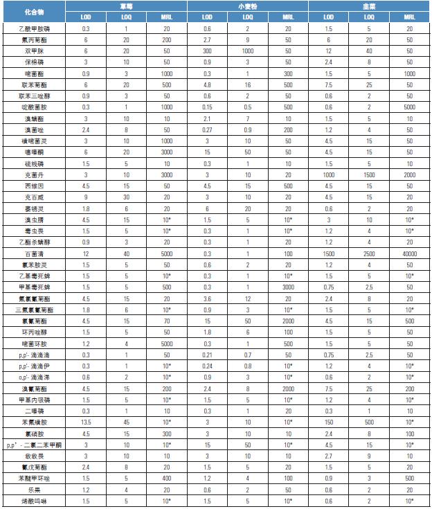 * 由于沒有MRL 規定值,默認設置為10 ng/g