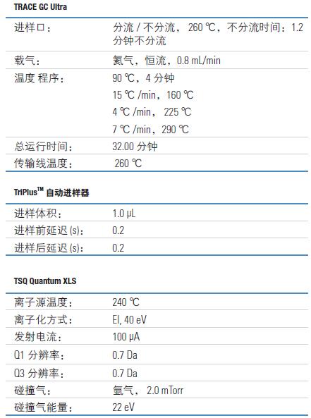 表1. TSQ Quantum XLS、TRACE GC Ultra,及TriPlus 自動(dòng)進(jìn)樣器儀器設(shè)置